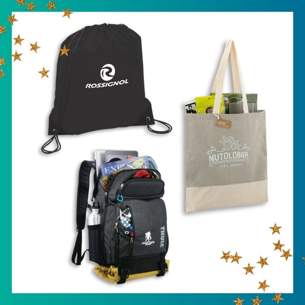 Bags continue to be one of the most requested product categories of the year. They work for events, onboarding, and trade shows, which keeps them in constant circulation. Examples in this group include reusable totes, drawstring bags, and backpacks.