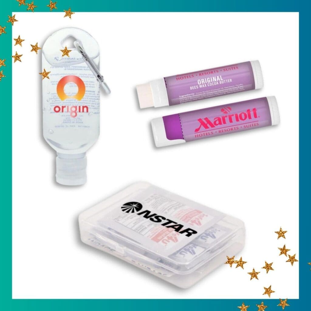 Health related items appeared in welcome kits, employee appreciation gifts, and community outreach events. They are one of the easiest categories to hand out. Examples include lip balm, hand sanitizer, and wellness items.