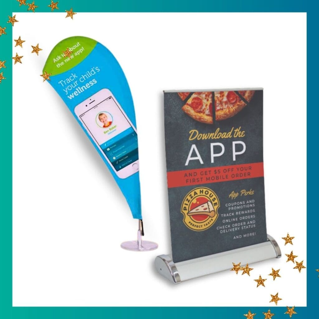 Signage was used throughout the year for event tables, displays, and product launches. These pieces help share information clearly while keeping branding front and center. Examples include display cards, flat signs, and table signs.