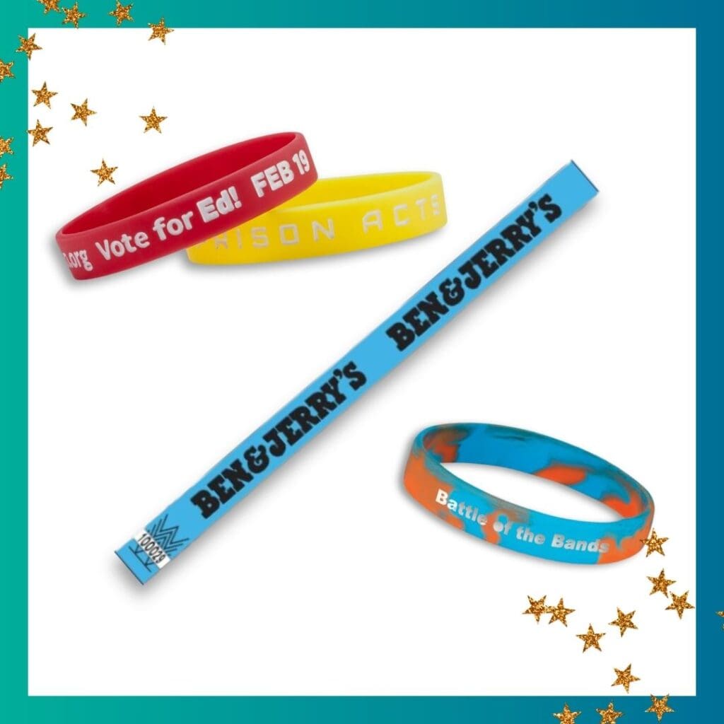 Wristbands are a natural fit for events where crowd engagement is important. They also work well for awareness campaigns and fundraisers. Examples include silicone wristbands, Tyvek bands, and fabric wristbands.